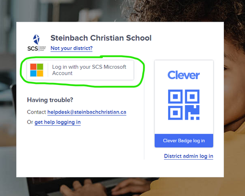 At the Steinbach Christian School login page, click the "Log in with your SCS Microsoft Account" button.